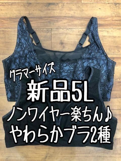新品☆5Lグラマーサイズ♪やわらかノンワイヤー楽ちんブラ2枚〇B700