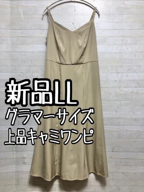 新品☆LLグラマーサイズ♪ベージュ系♪上品キャミワンピース〇A924