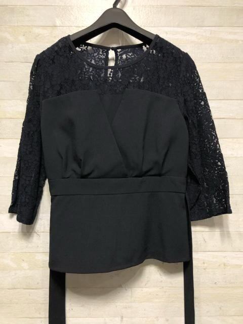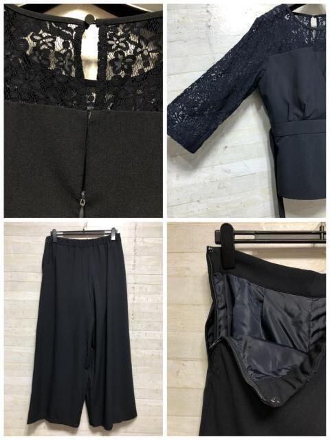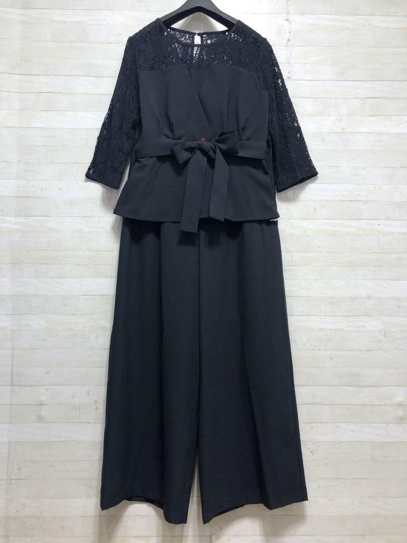 新品☆L♪紺系♪ベアトップ風ブラウス&ワイドパンツ♪セットアップ〇G426