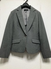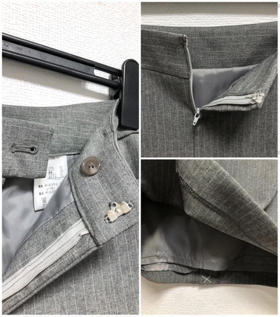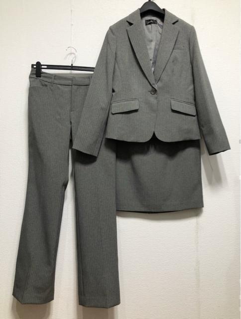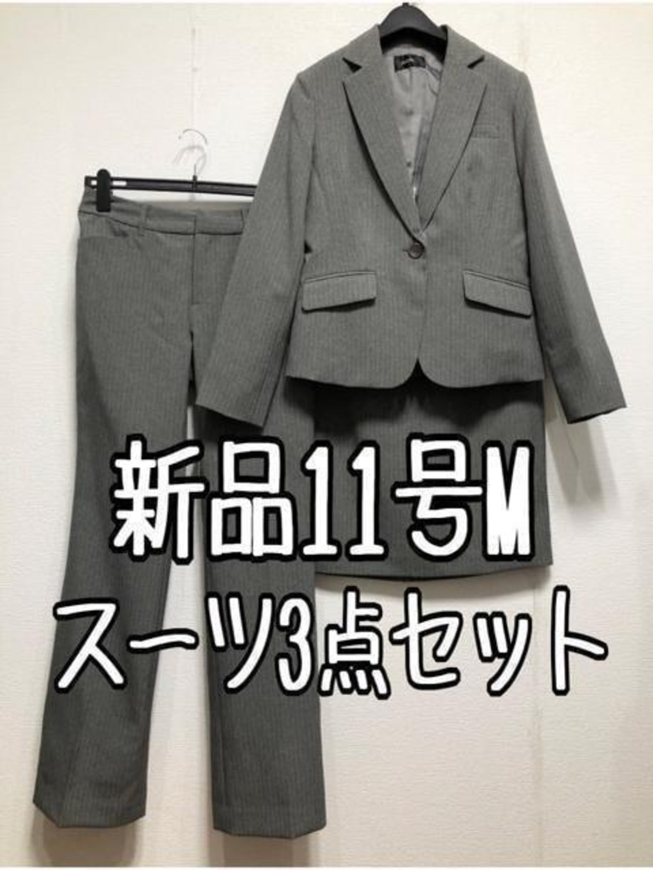 新品☆11号M♪グレー系ストライプ♪パンツ・スカート付スーツ3点セット☆u607