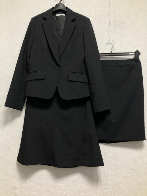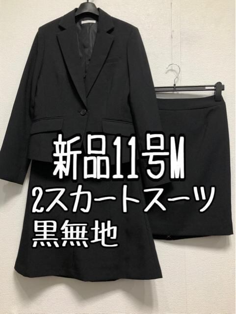 新品☆11号M黒系無地♪洗える2種スカート付きスーツお仕事やオフィスに☆u869