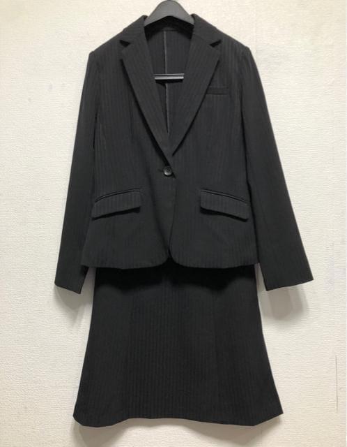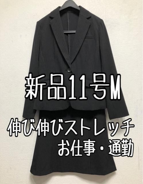 新品☆11号M♪黒系♪すご伸びセミフレアスカートスーツ♪防汚洗える♪☆u910