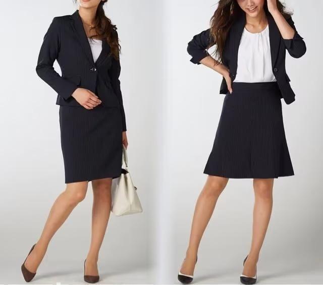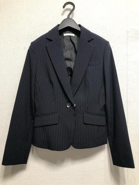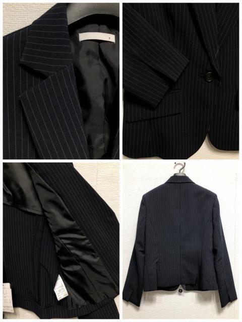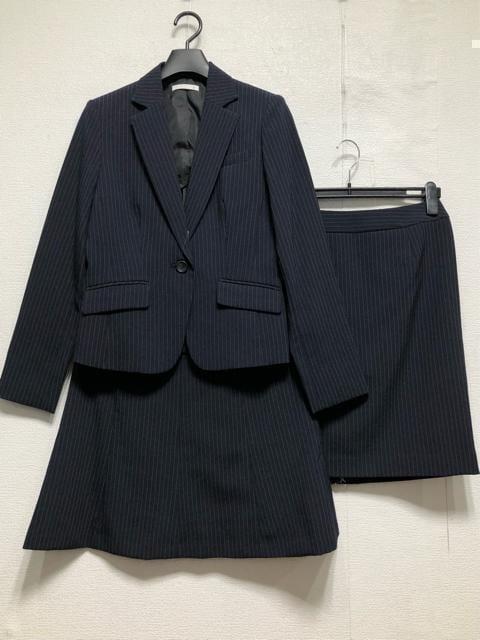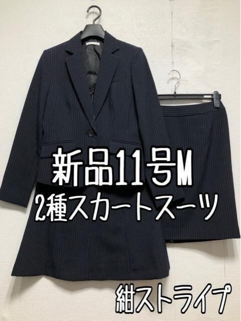 新品☆11号M♪紺系ストライプ♪スカート2種付きスーツ3点♪オフィス☆r287
