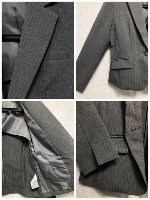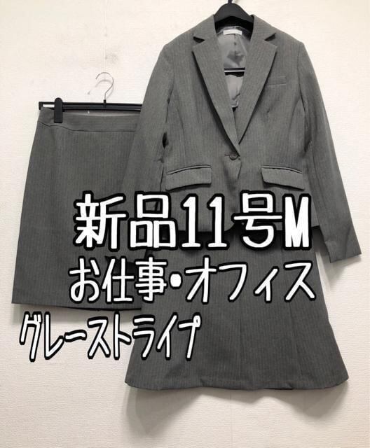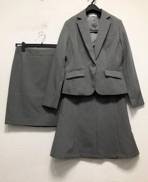新品☆11号Mグレー系ストライプ♪スカート2種付きスーツ3点♪オフィス☆r308