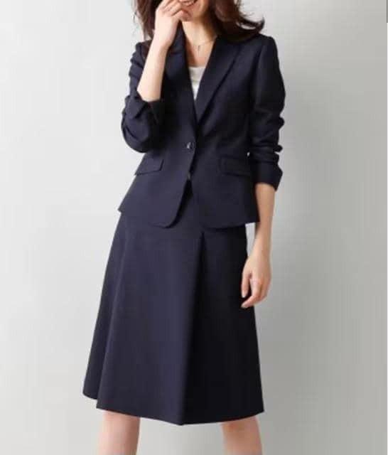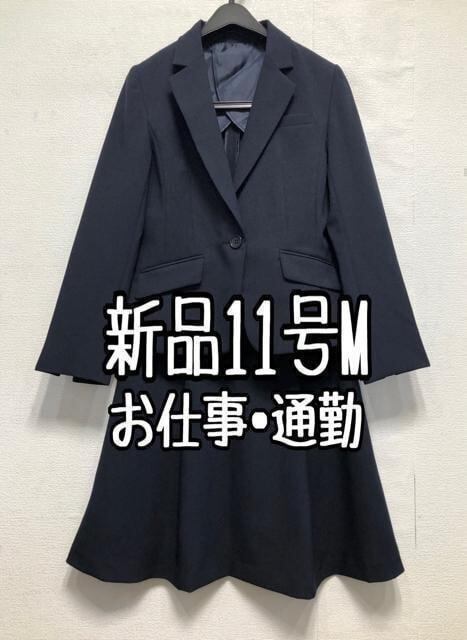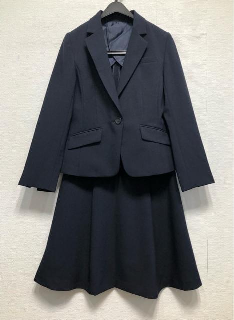 新品☆11号M♪紺系無地♪洗えるスカートスーツ♪タックフレア♪お仕事☆r317