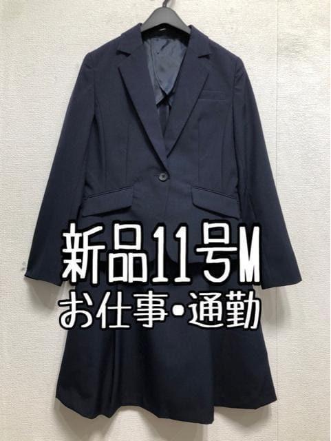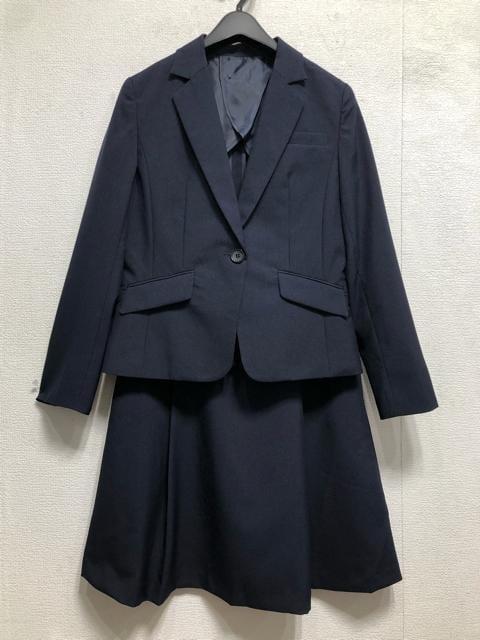 新品☆11号M紺系♪タックフレアスカートスーツ♪お仕事オフィス☆r664
