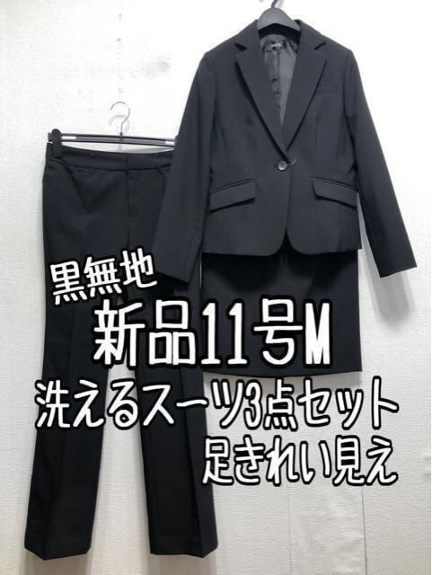 新品☆11号M黒系無地♪スカート・パンツスーツ3点♪お仕事・通勤☆r966