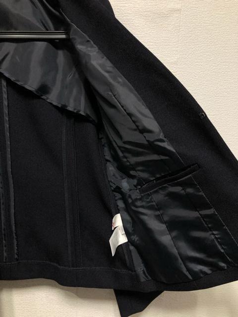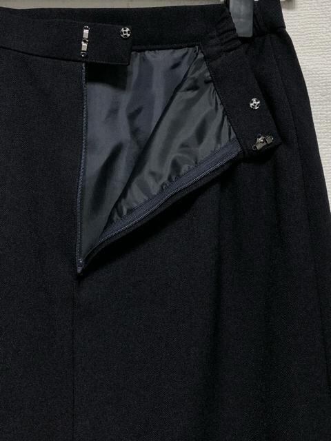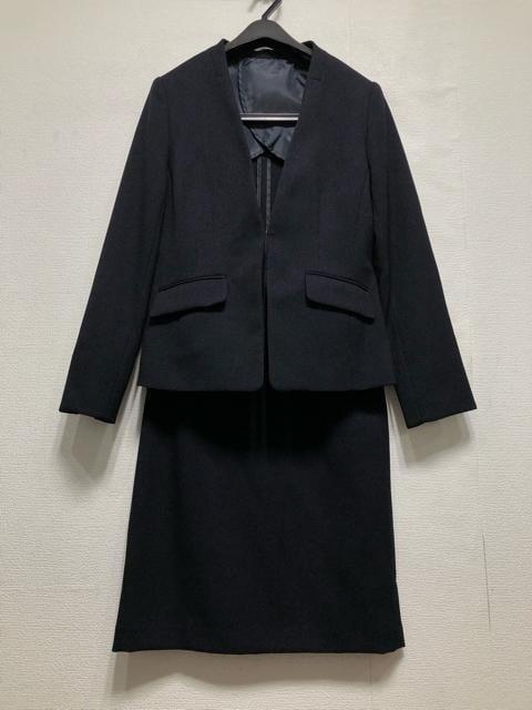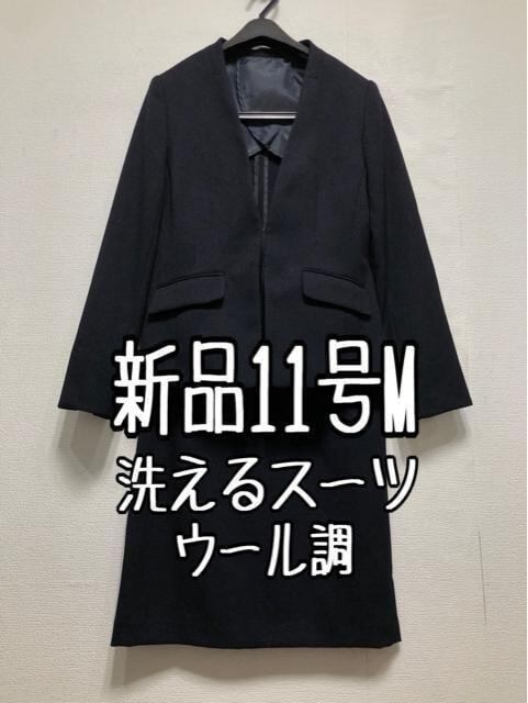 新品☆11号M紺系♪ウール調ノーカラージャケット&スカートスーツ洗える☆r336