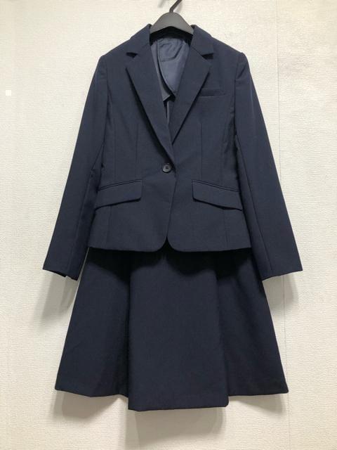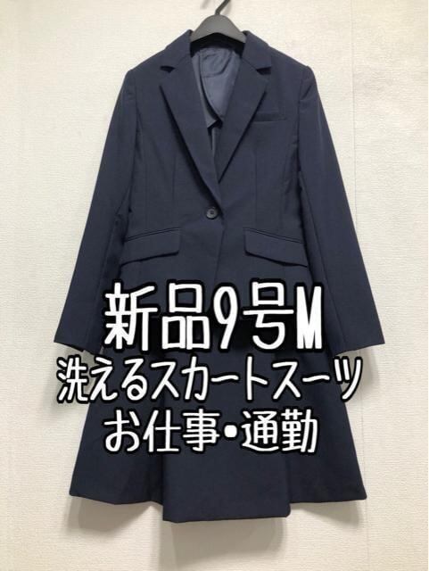 新品☆9号M紺系♪洗えるスカートスーツ♪タックフレアお仕事オフィス☆r663