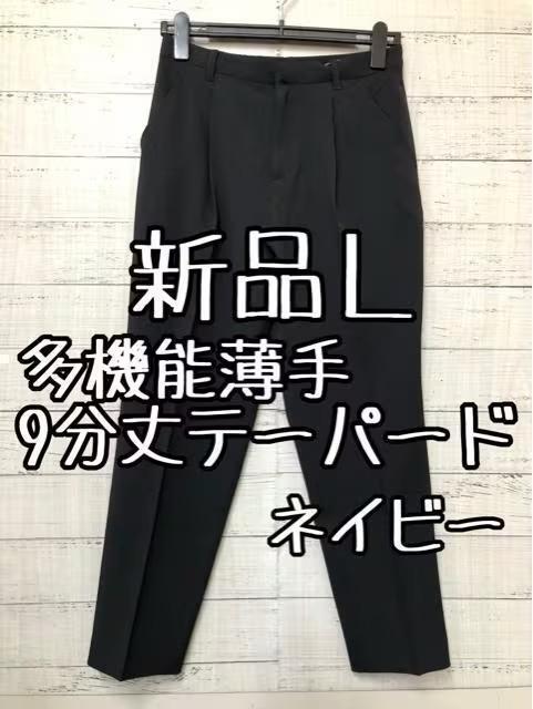 新品☆L♪紺系♪多機能薄手きれいめ9分丈テーパードパンツ♪☆s528