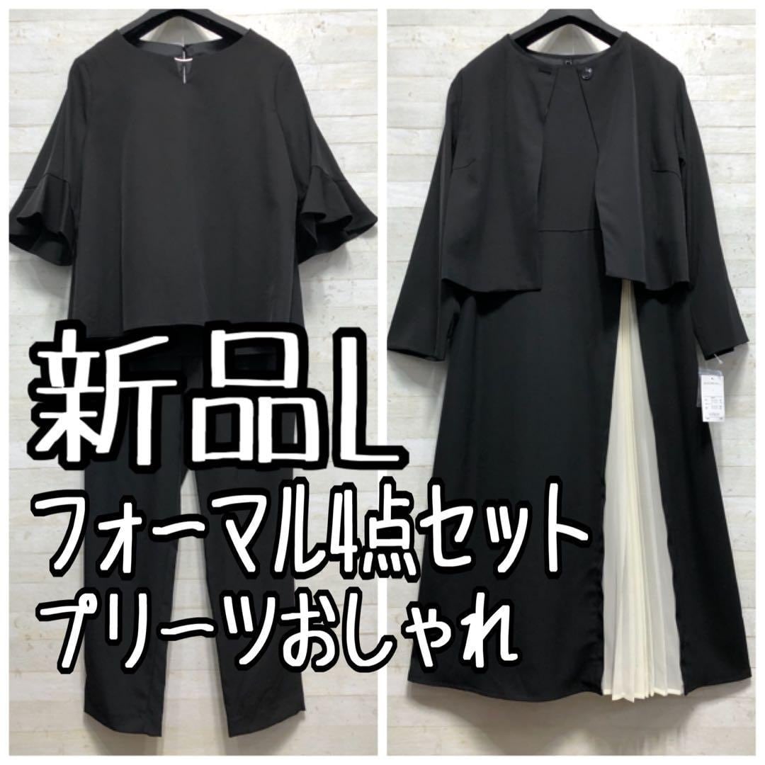 新品☆L♪黒系無地プリーツおしゃれフォーマルスーツ4点セット◯D249
