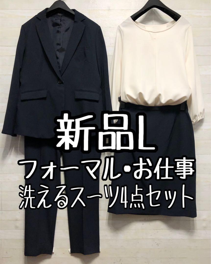 新品☆L紺系無地♪シャンブレーおしゃれ♪セットアップスーツ4点◯G415