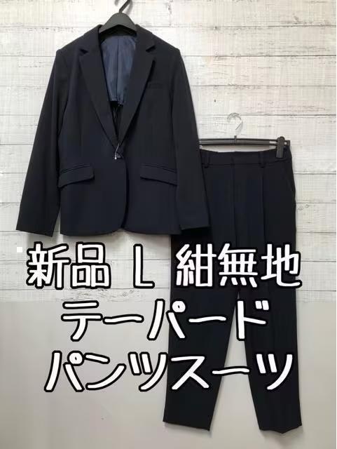新品☆L♪紺無地♪ストレッチテーパードパンツスーツ♪お仕事フォーマル☆t457