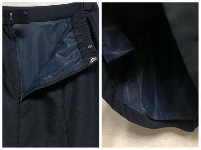 スカート、裏地あり、ウエスト部ゴム入りの仕様です。