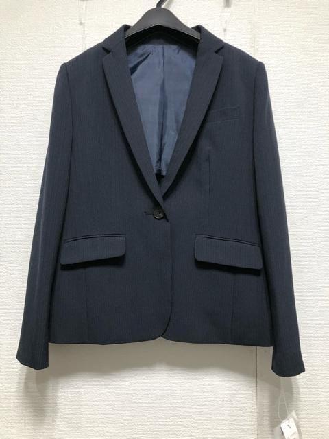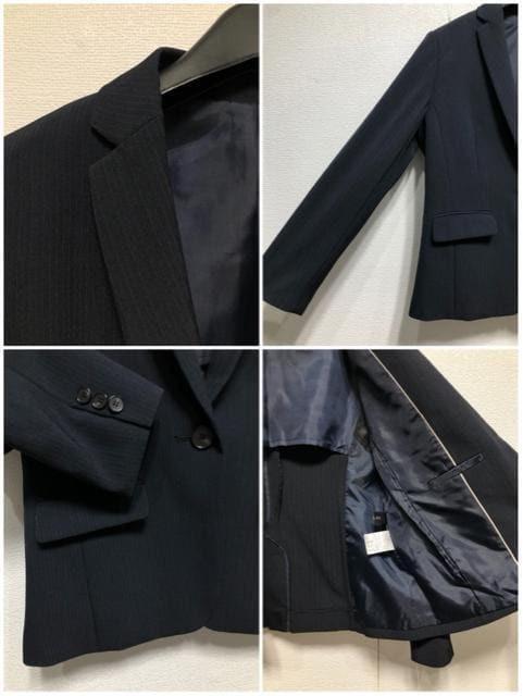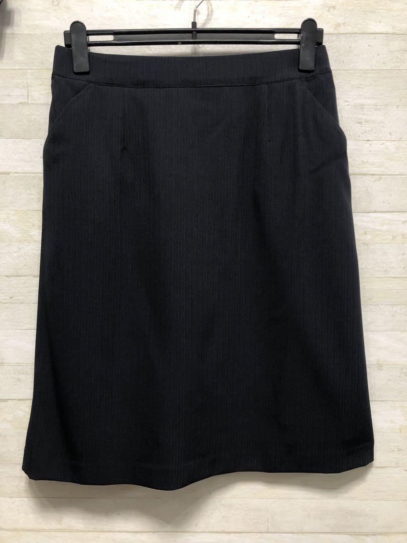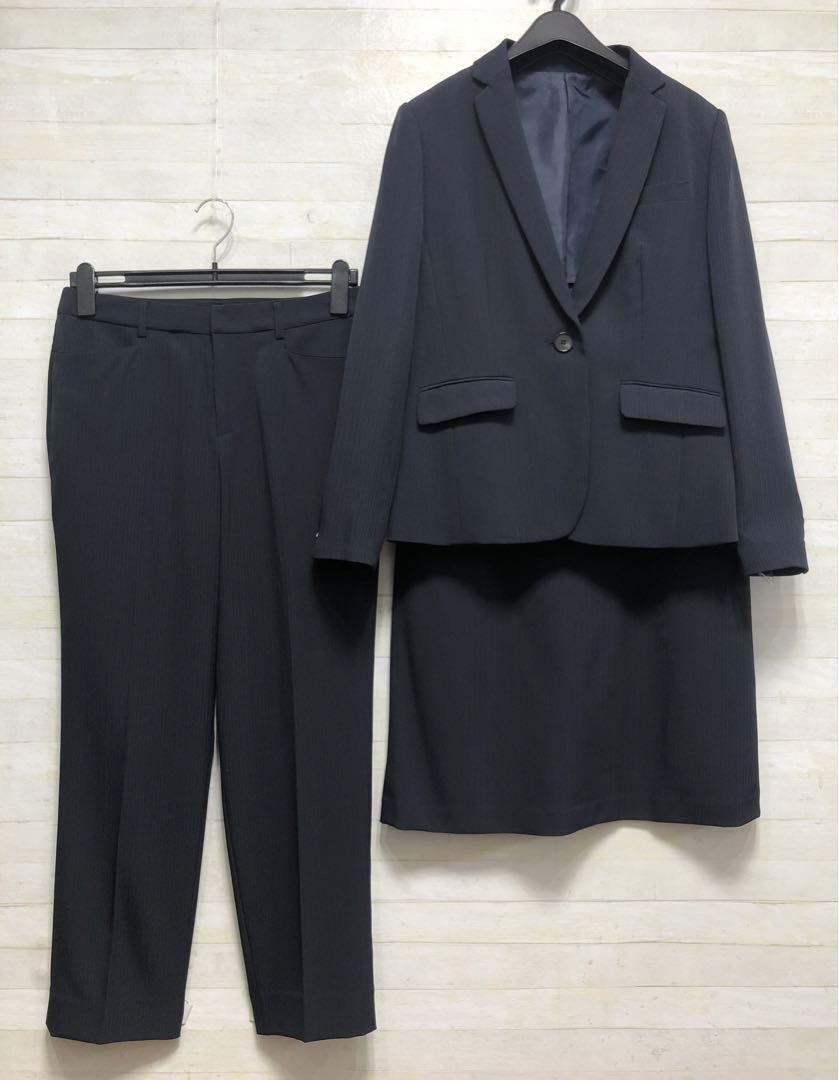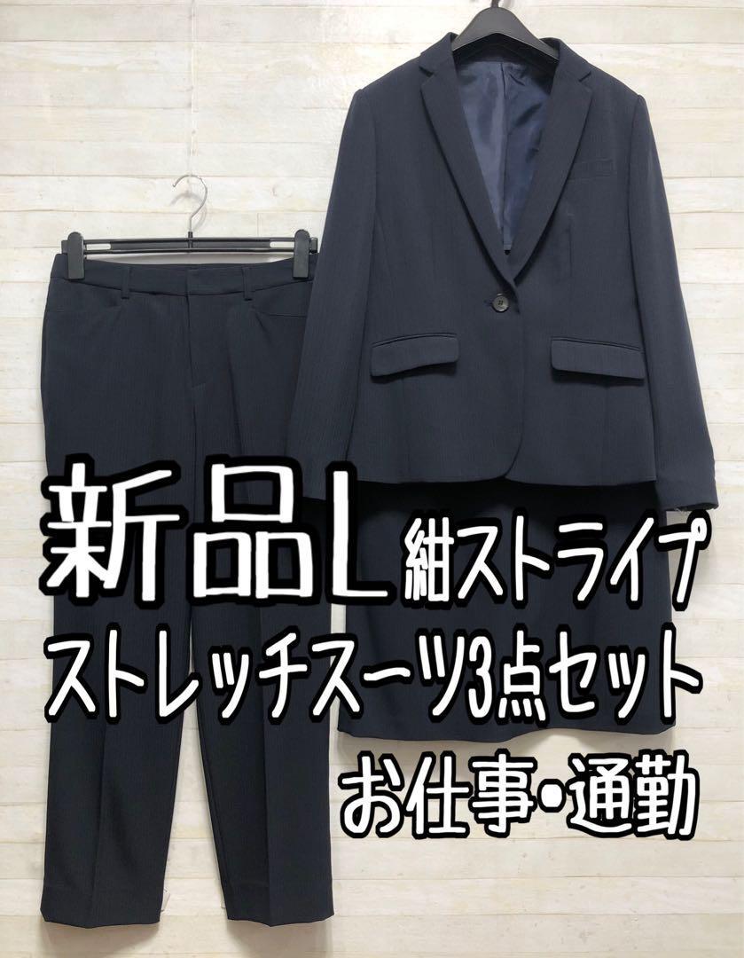 新品☆L紺系ストライプ♪ストレッチ2ボトムスーツ♪パンツ・スカート〇D373