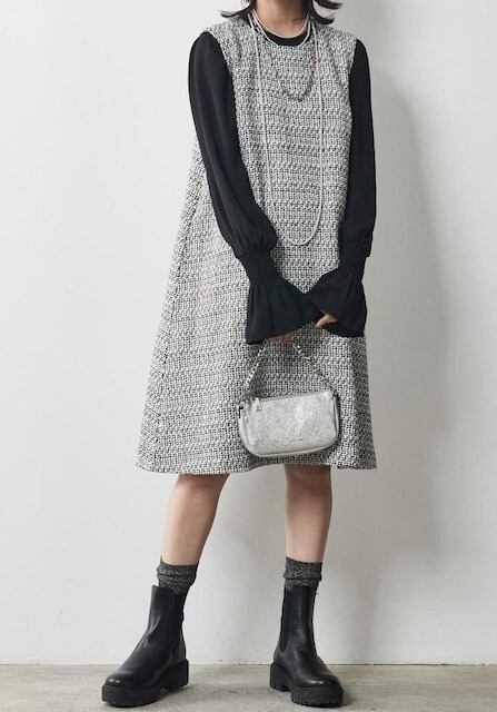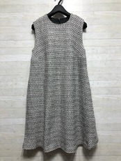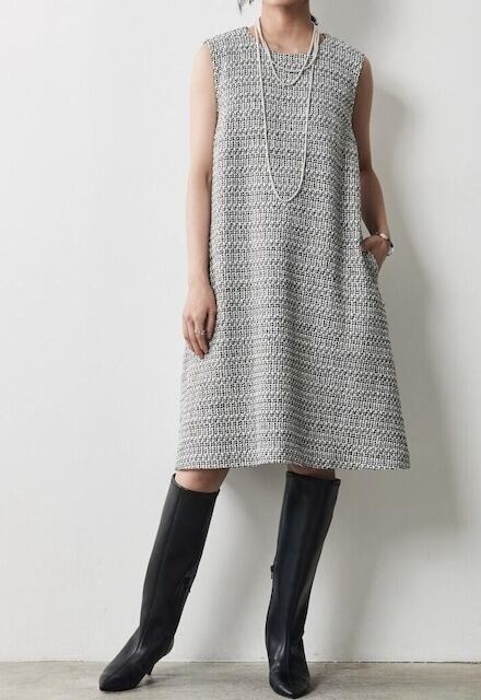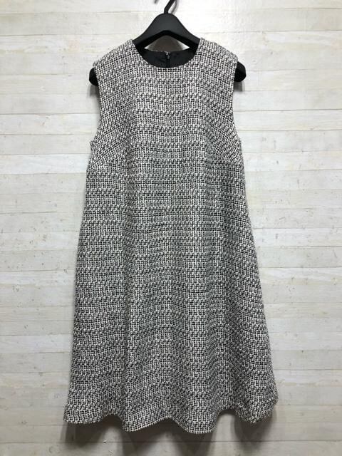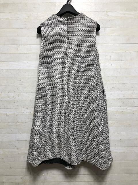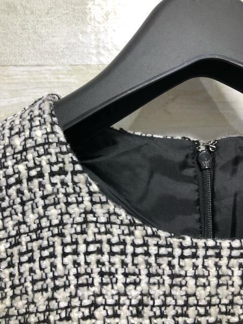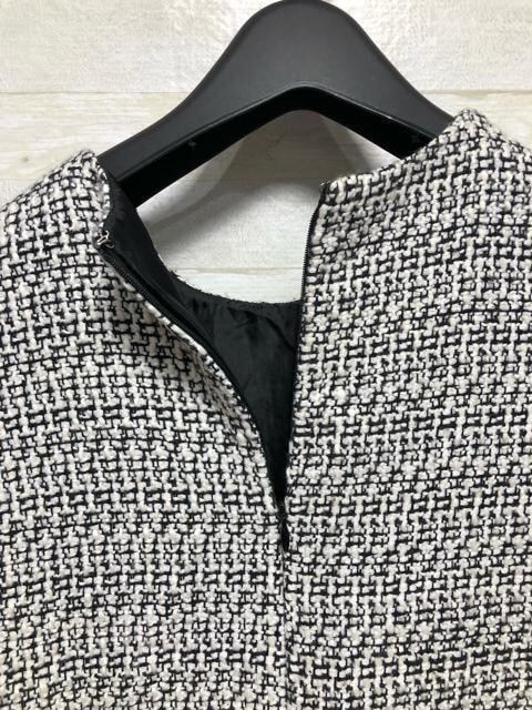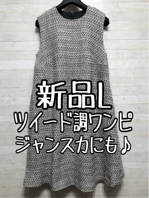 新品☆L♪白×黒系♪ツイードノースリーブワンピ♪Aライン〇B740