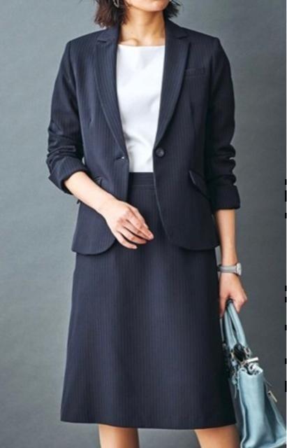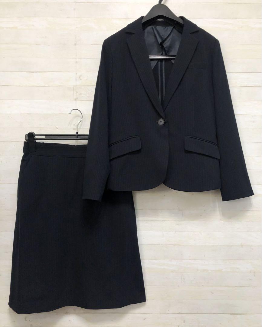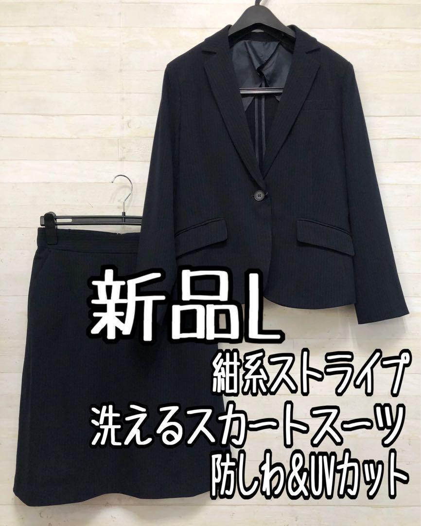 新品☆Lサイズ♪紺系♪防しわUVカット♪ストレッチスカートスーツ◯G365