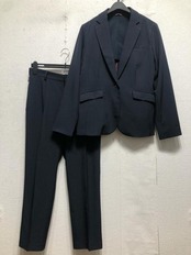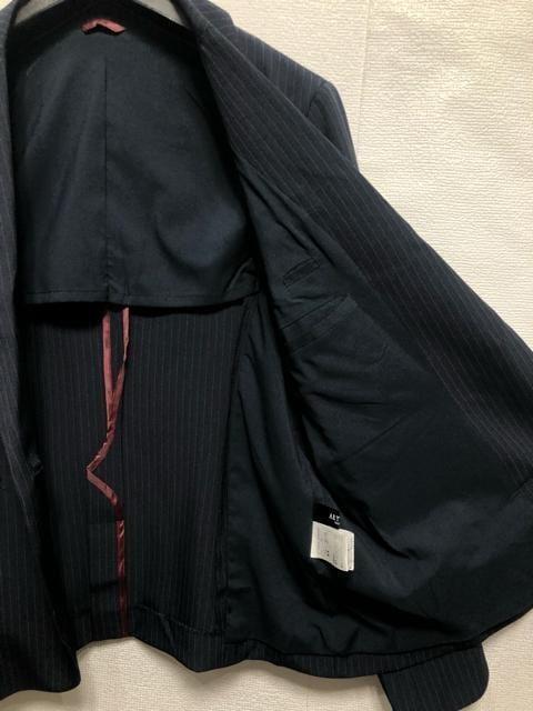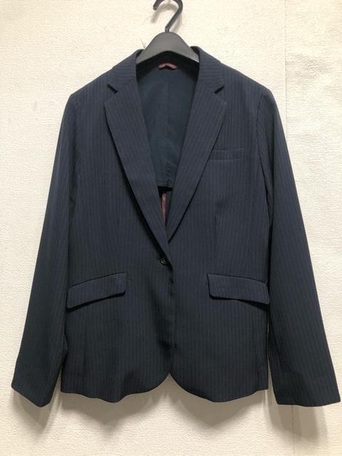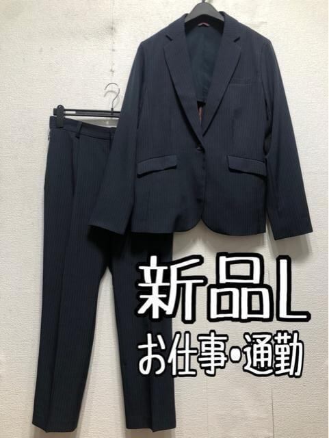 新品☆L♪紺系ストライプ柄♪テーパードパンツスーツ♪お仕事・通勤☆r267