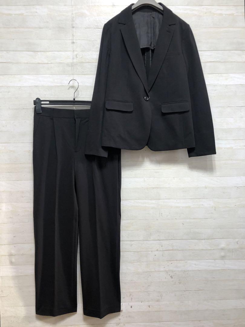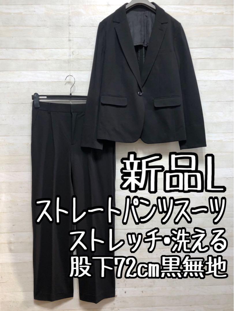 新品☆L黒系無地ストレッチ素材ECOパンツスーツお仕事・通勤〇G546