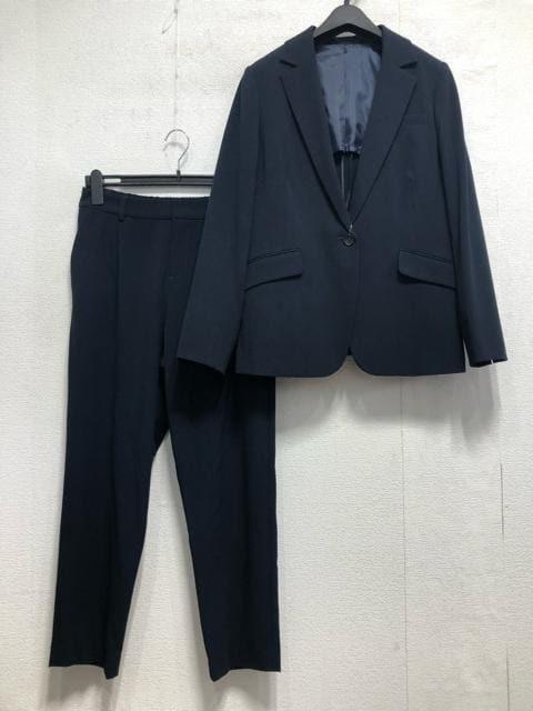 新品☆L紺系♪9分丈テーパードパンツスーツ洗えるストレッチお仕事・通勤☆r949