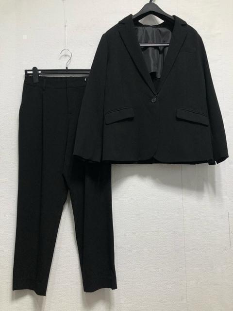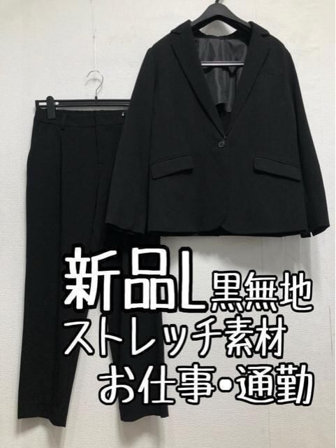 新品☆L♪黒系無地♪ストレッチテーパードパンツスーツ♪お仕事フォーマル☆b474