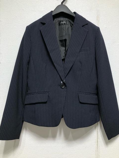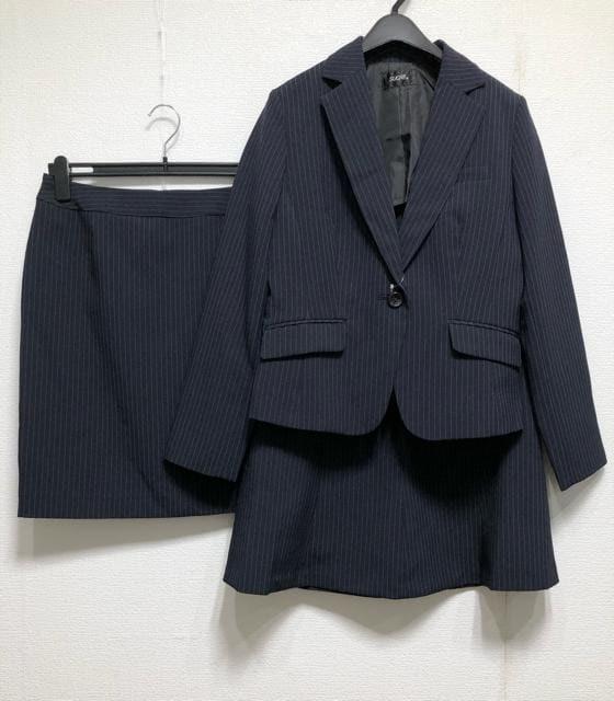新品☆13号L♪紺系ストライプお仕事オフィスに2スカートスーツ☆u604