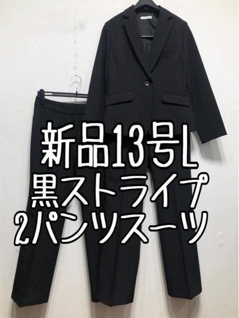 新品☆13号L黒系ストライプ♪2パンツスーツ♪お仕事・通勤にも♪☆r185