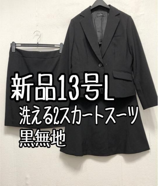 新品☆13号L黒系無地♪フレア&タイトスカートスーツ♪お仕事☆a229