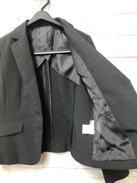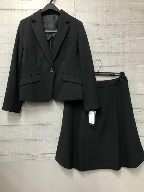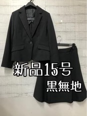 新品☆15号黒無地♪タックフレアスカートスーツ♪お仕事にも♪洗える☆s535