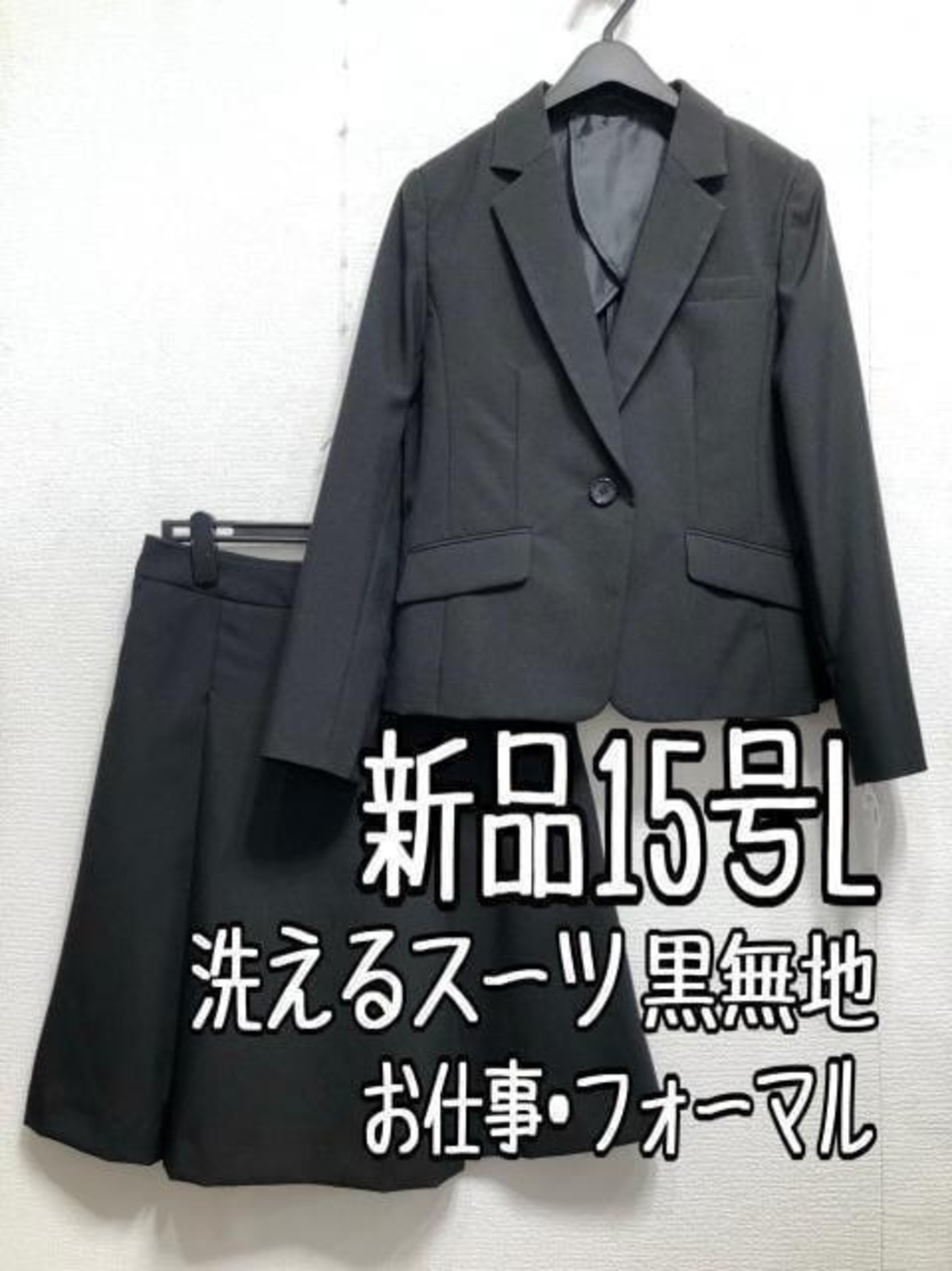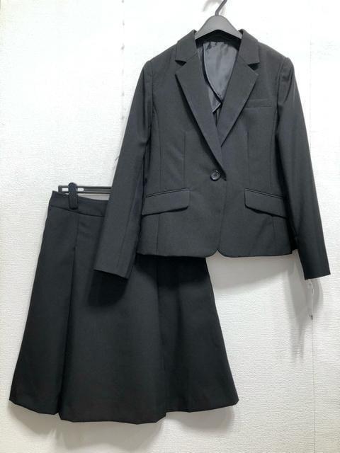 新品☆15号L黒系無地タックフレアスカートスーツお仕事ビジネス通勤☆r626