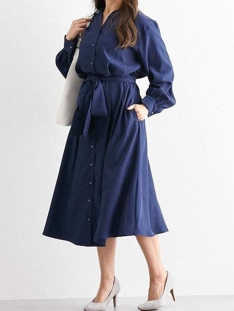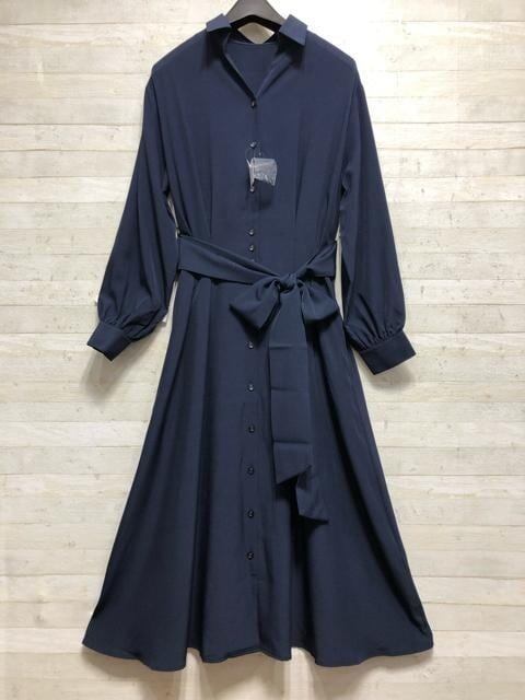 新品☆Mグラマーサイズ♪紺系♪おしゃれロングワンピ〇A944