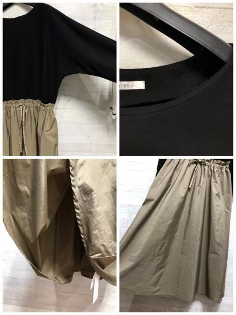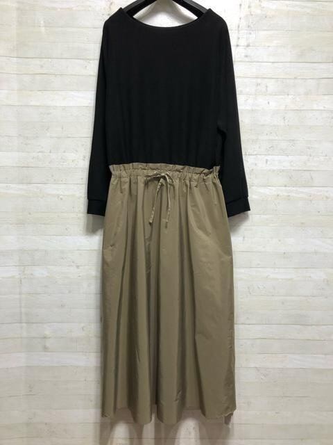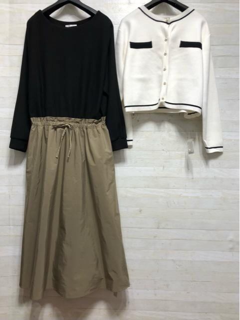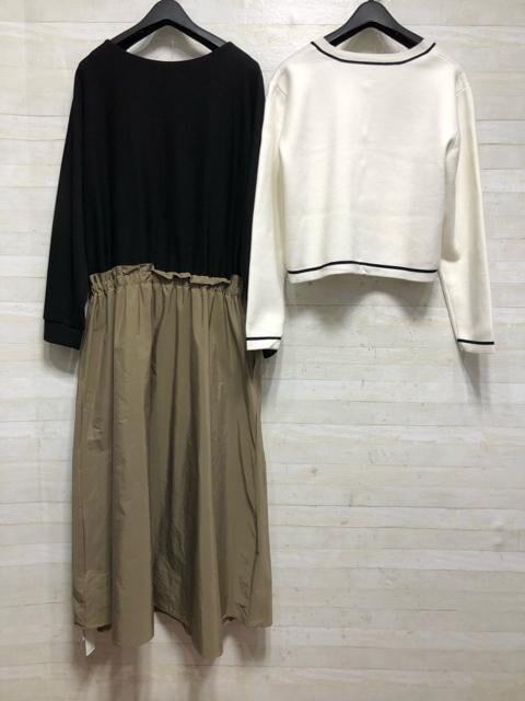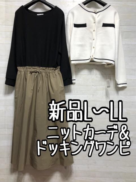 新品☆L~LLニットカーデ&綿混ドッキングワンピース〇A947