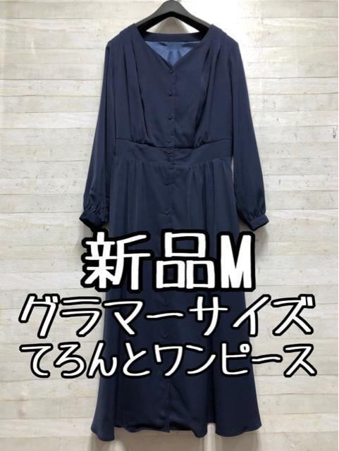 新品☆MグラマーサイズVネックきれいめワンピース〇B745