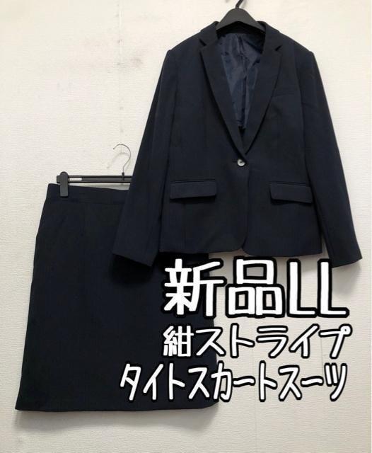 新品☆LL♪紺系ストライプ柄タイトスカートスーツ♪お仕事・通勤☆r692