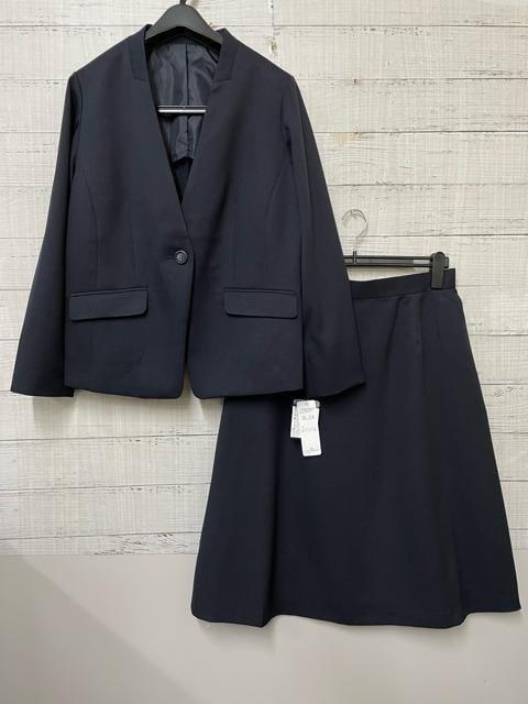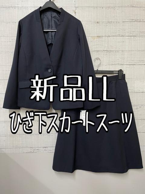 新品☆LL♪紺系♪ノーカラージャケット&ひざ下スカートのスーツ☆g229