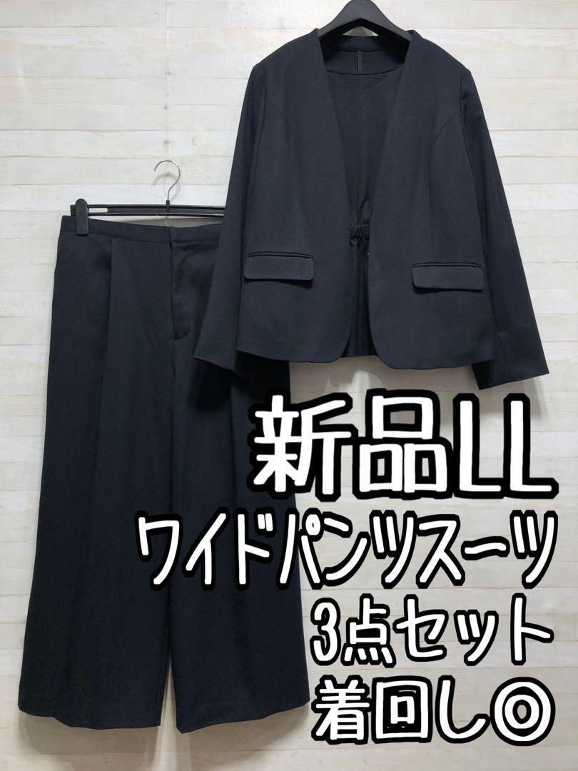 新品☆LL紺系♪着回し3点セット♪セミワイドパンツ♪お仕事・フォーマル〇D348