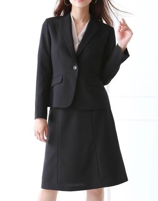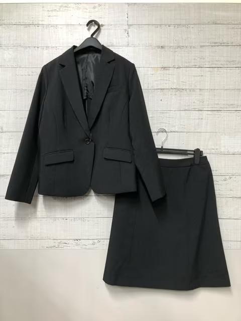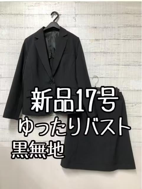 新品☆17号ゆったりバスト♪黒無地スカートスーツ♪お仕事・フォーマル♪☆t344