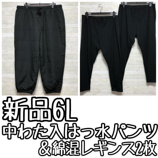 新品☆6L黒系♪中わた入パンツ&綿混10分丈レギンス2枚〇B789