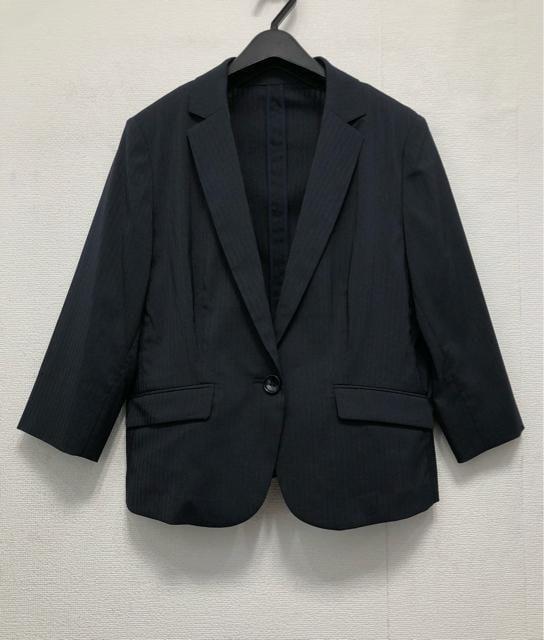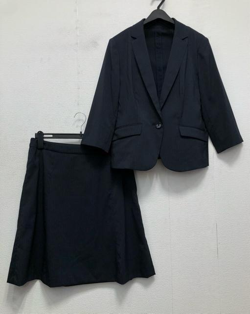 新品☆17号LL♪紺系ストライプ柄うす手スカートスーツ♪お仕事・通勤☆r693