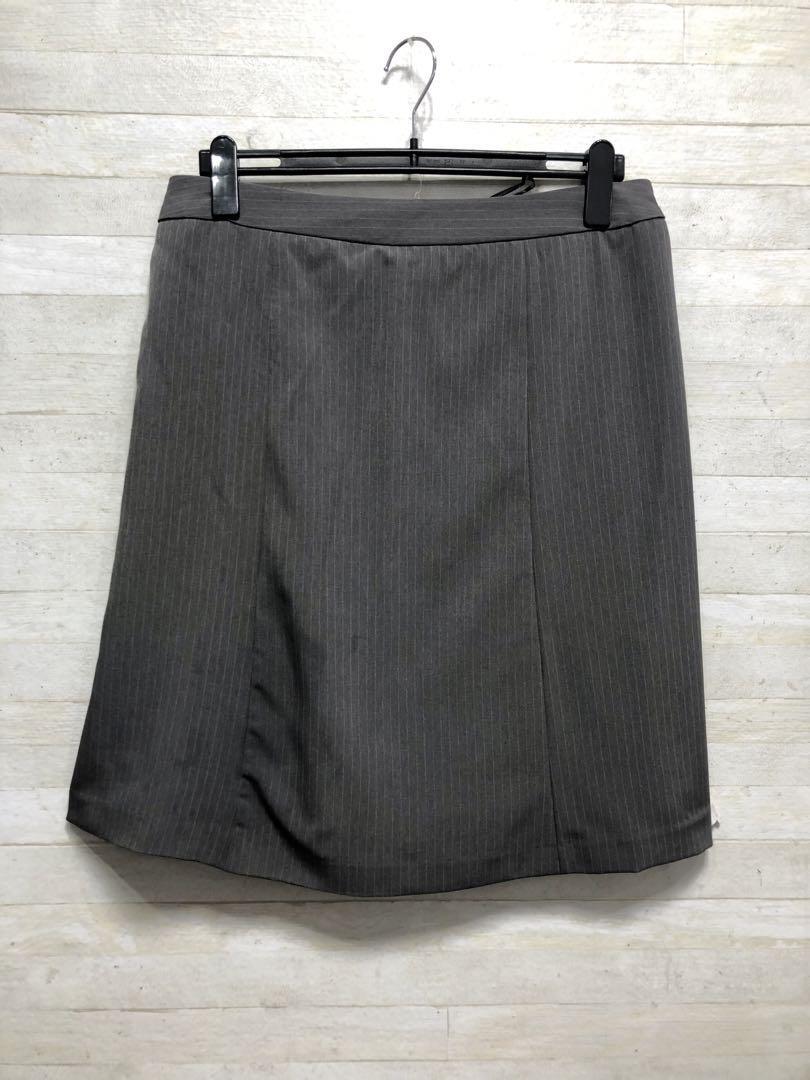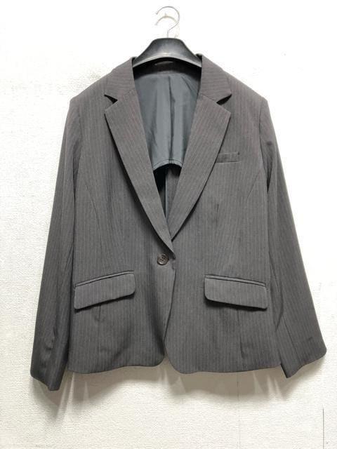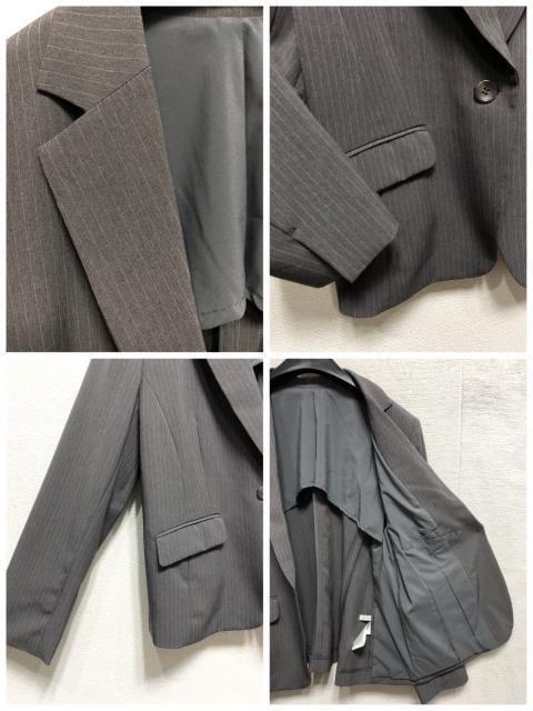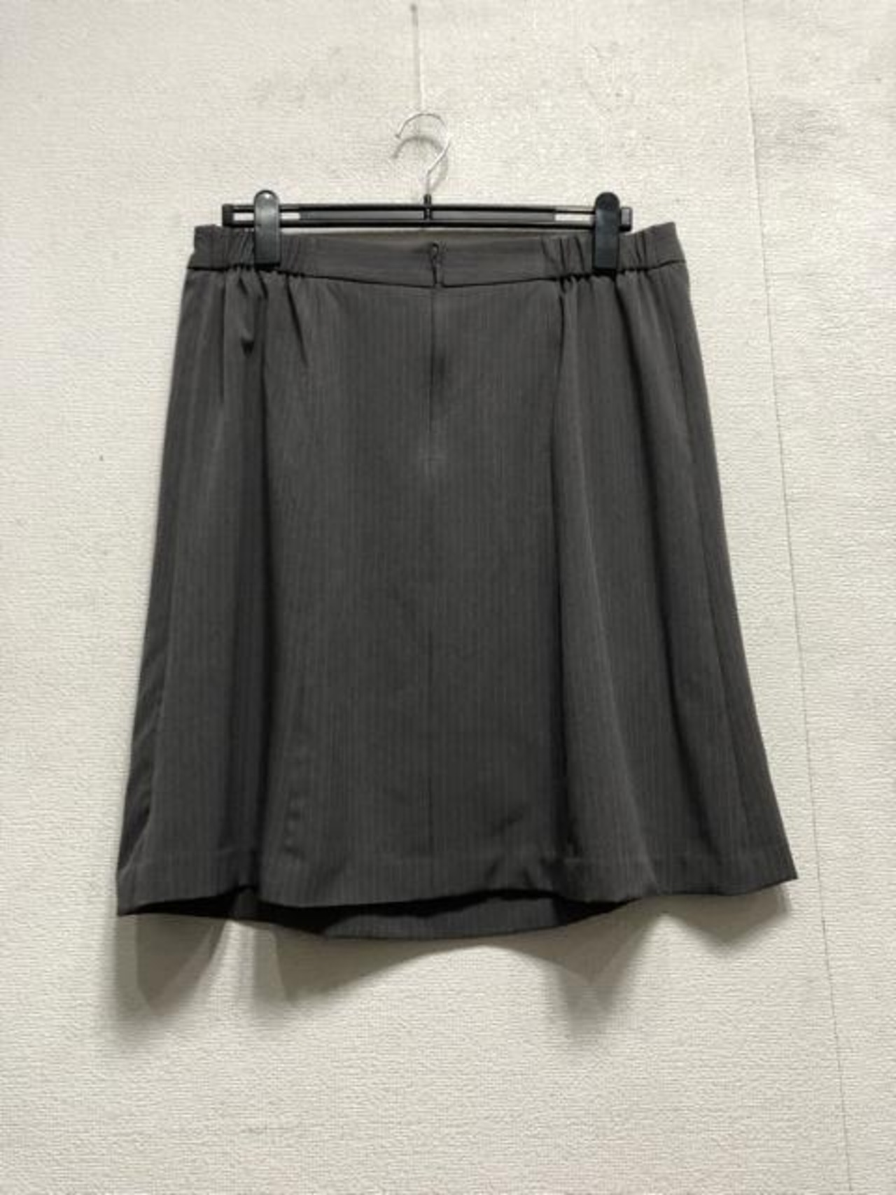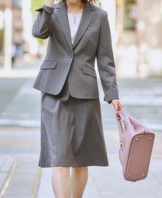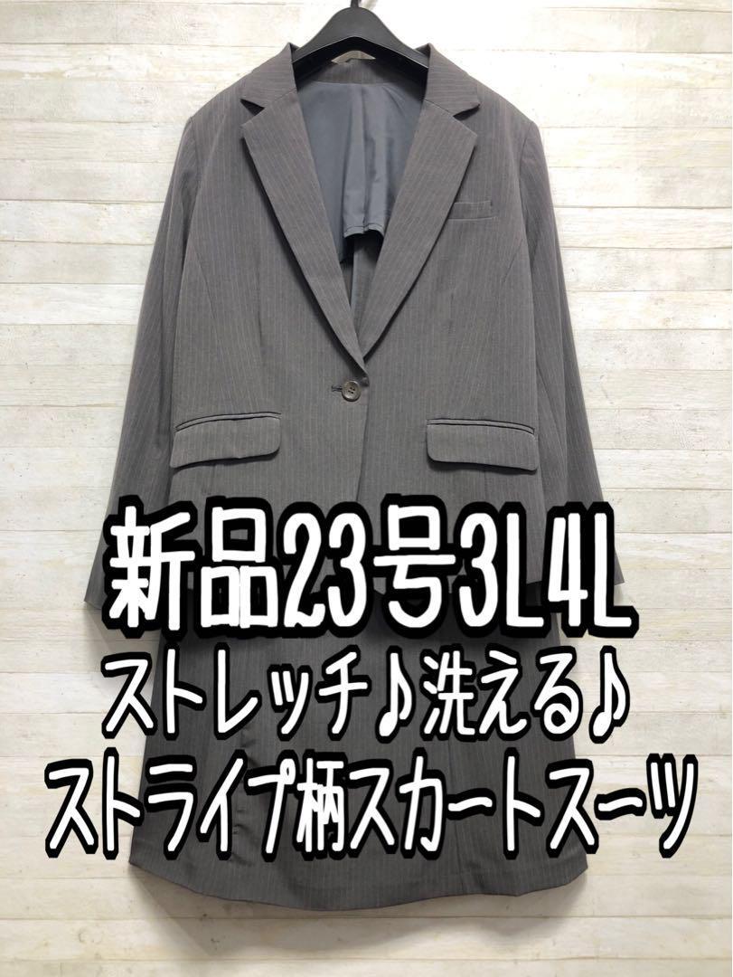 新品☆23号3L4Lグレー系ストライプ♪セミフレアスカートスーツ♪オフィス◯G210