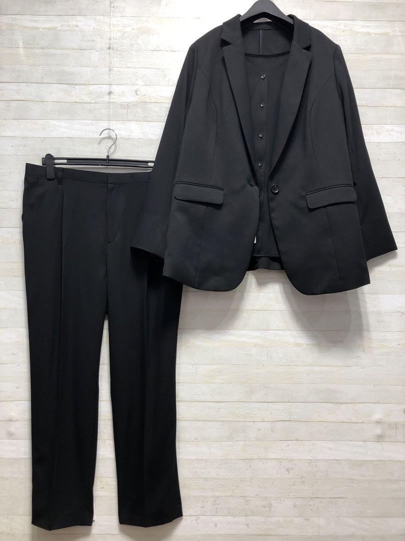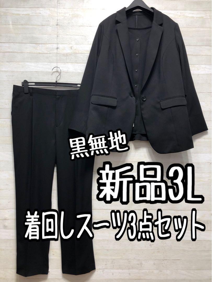 新品☆3L黒系無地♪着回し3点テーパードパンツスーツお仕事・フォーマル◯D362