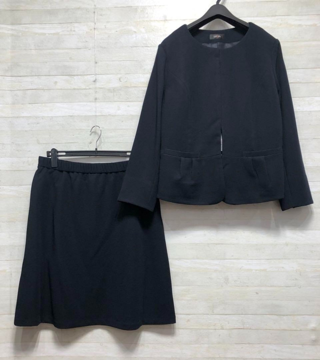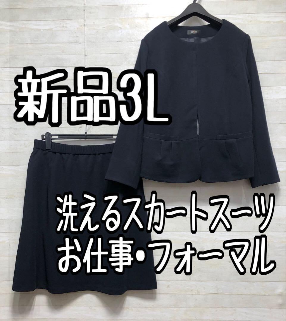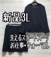 新品☆3L紺系♪伸び伸びストレッチ♪フレアスカートスーツ♪お仕事・通勤〇D194