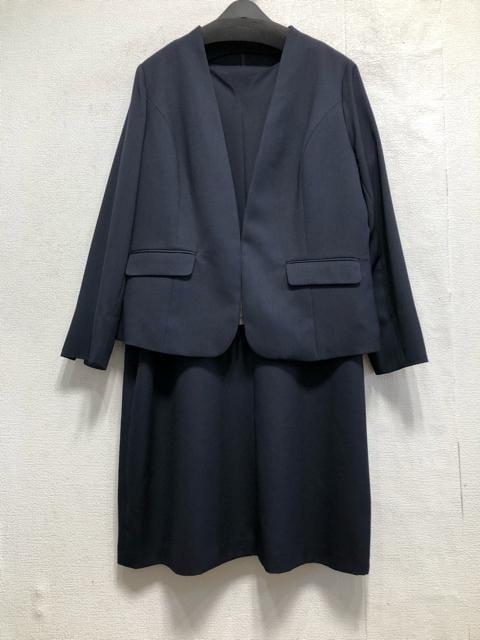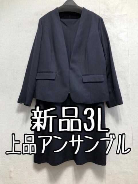 新品☆3L♪紺系♪ノーカラージャケット&ワンピース♪セットアップ☆b908