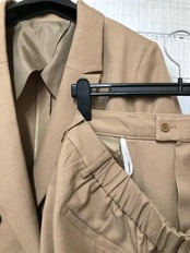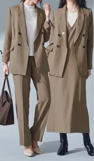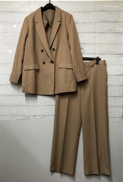 新品☆3Lキャメル系ダブルのスーツ3点セット♪パンツスーツ・ジャンスカ☆t243