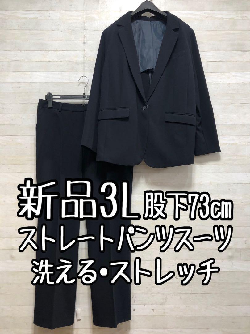 新品☆3L紺系♪ストレートパンツスーツ♪ストレッチお仕事フォーマル〇G545