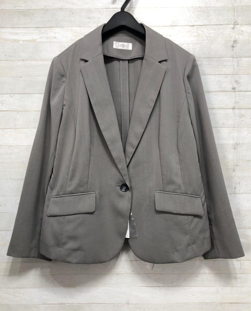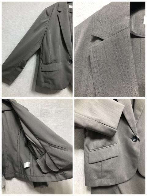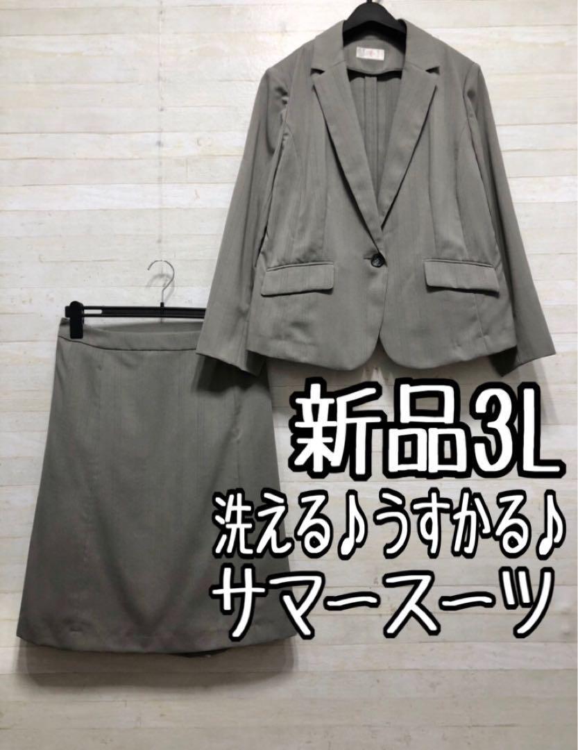 新品☆3Lグレー系ストライプ♪うすかるフレアスカートスーツ♪ストレッチ〇G234