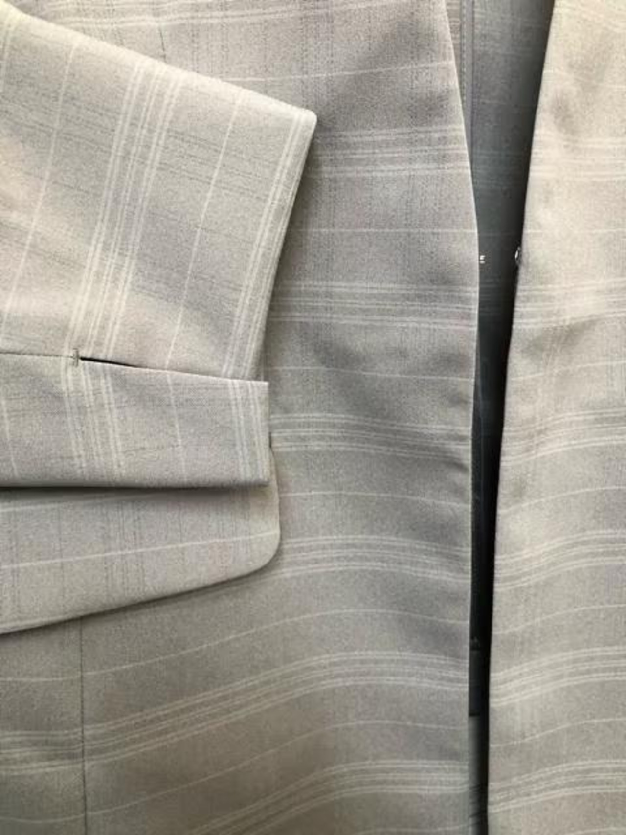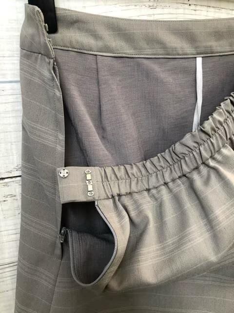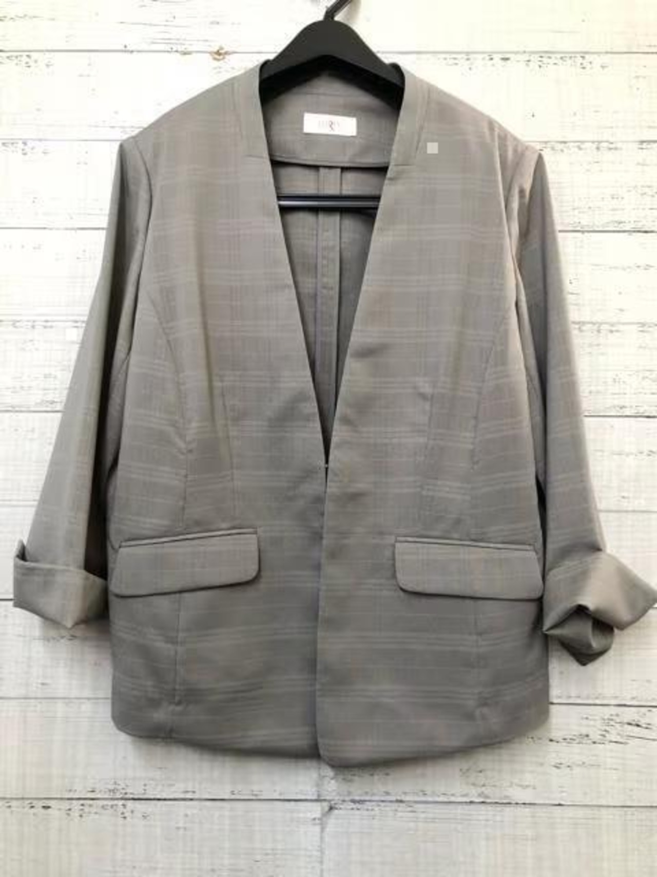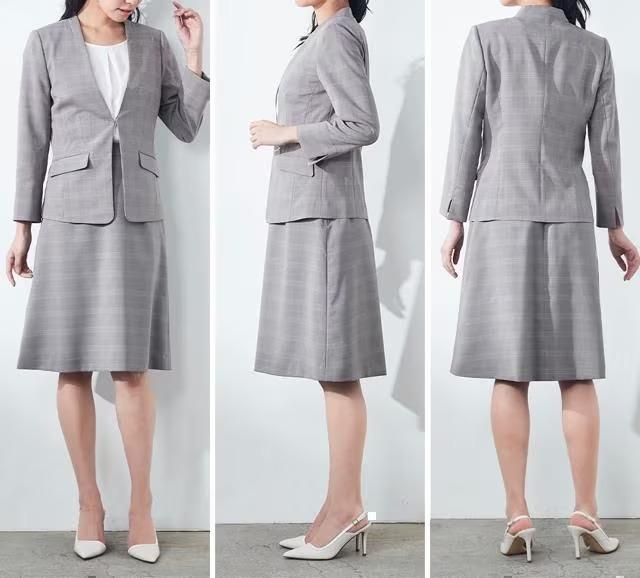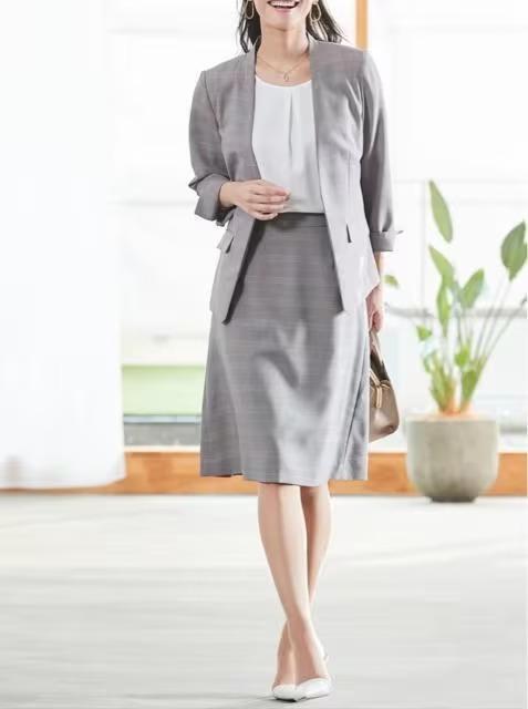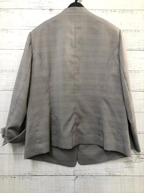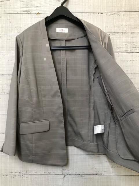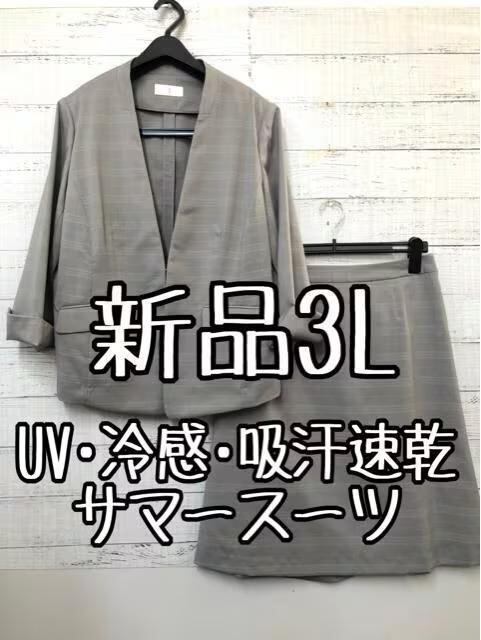 新品☆3Lグレージュ系サマースーツ♪ノーカラースカートスーツ♪オフィス☆s664