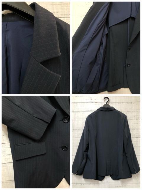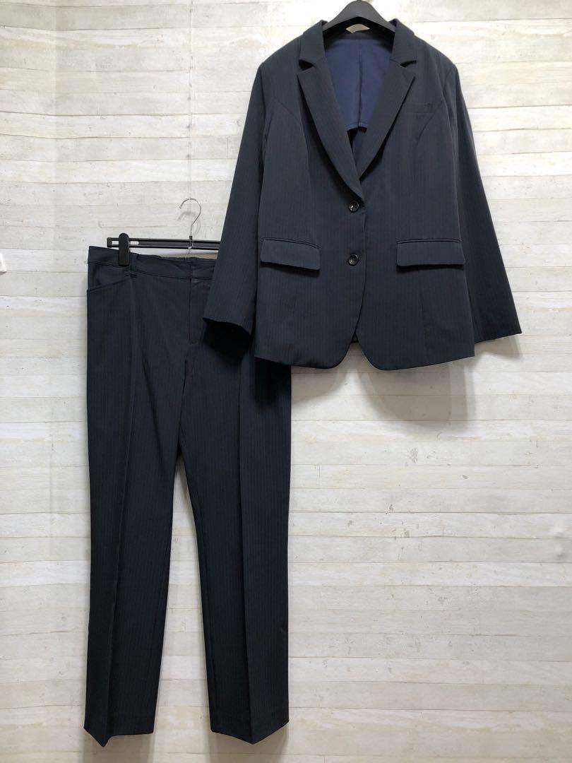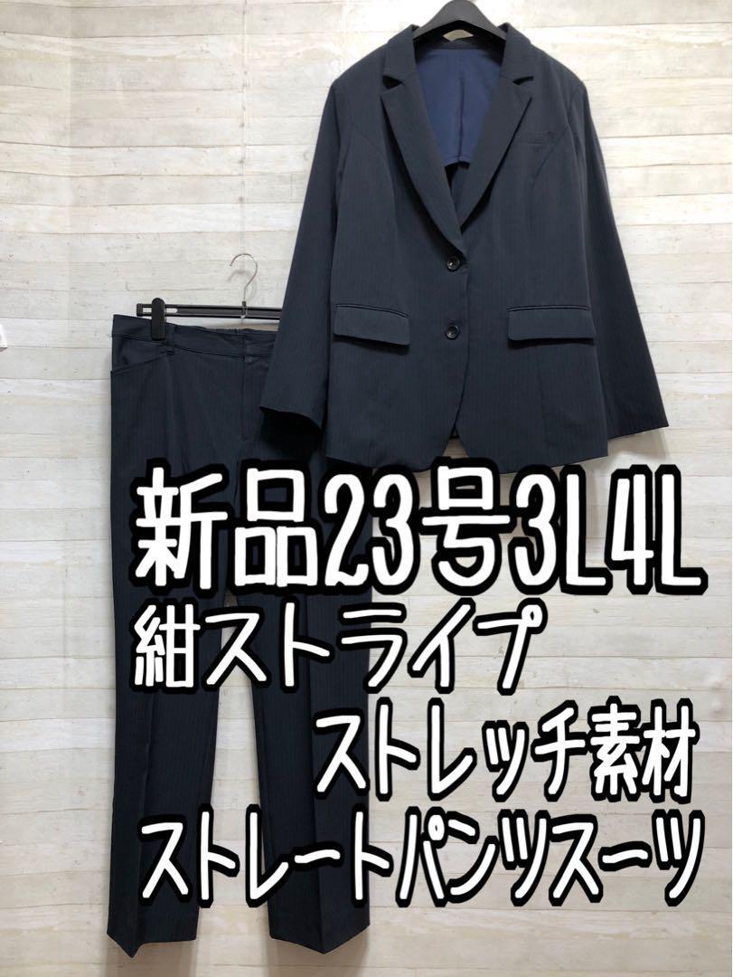 新品☆23号3L4L紺系ストライプ高機能ストレッチパンツスーツお仕事〇Q218