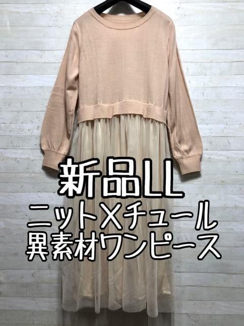 新品☆LL重ね着風デザインおしゃれドッキングワンピ-ス〇B810