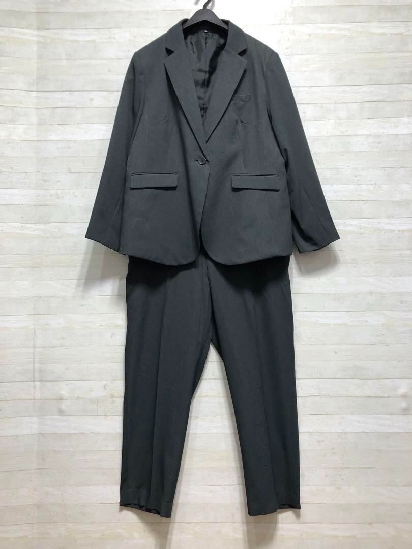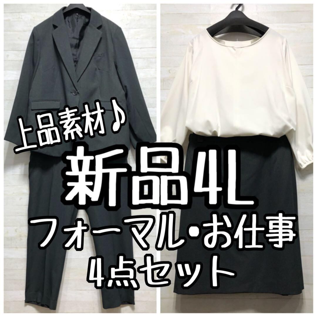 新品☆4Lグレー系♪セットアップスーツ4点セットお仕事・フォーマル○D153